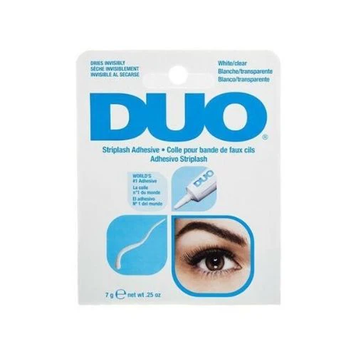 El Adhesivo para bandas pestañas transparente Duo 7g está formulado para su uso con bandas de pestañas, es de secado rápido y asegura un agarre duradero durante semanas.