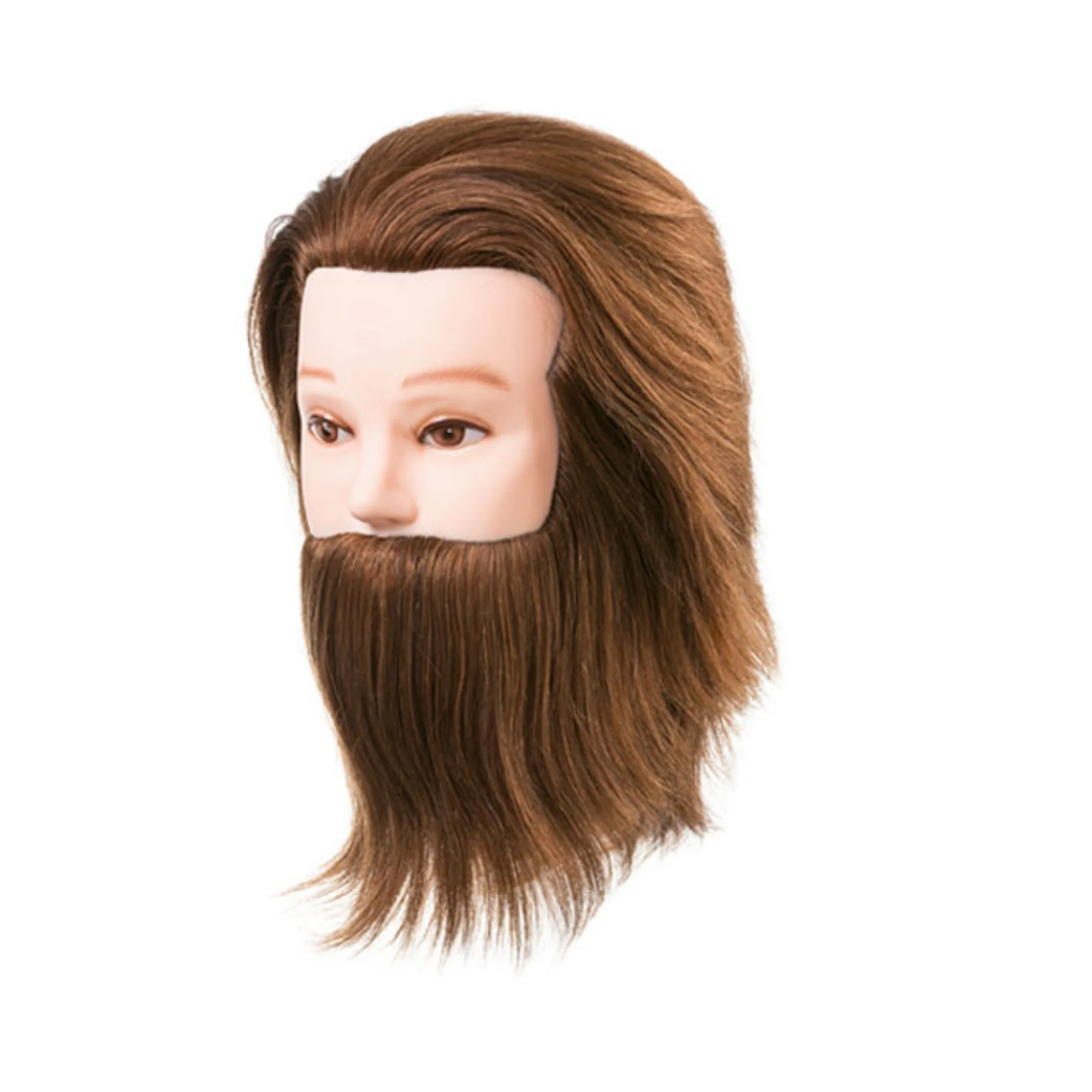 Cabeza Maniquí Barbería de cabello natural con barba.