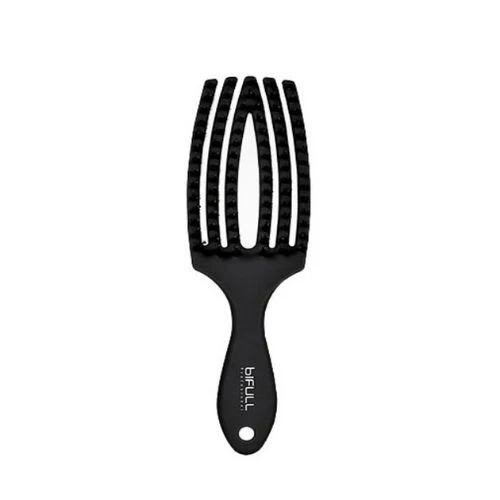 El Cepillo desenredante Orión color negro está especialmente fabricado para masajear el cuero cabelludo. Diseño con forma de mano que facilita el peinado a la vez que desenreda el cabello y masajea el cuero cabelludo. Fabricado con mango antideslizante y cerdas combinadas de jabalí que proporcionan brillo al cabello y púas de nylon con bolita que aportan brillo y reavivan el volumen natural. Gracias a su esqueleto permite un mejor flujo de aire para un secado más rápido.