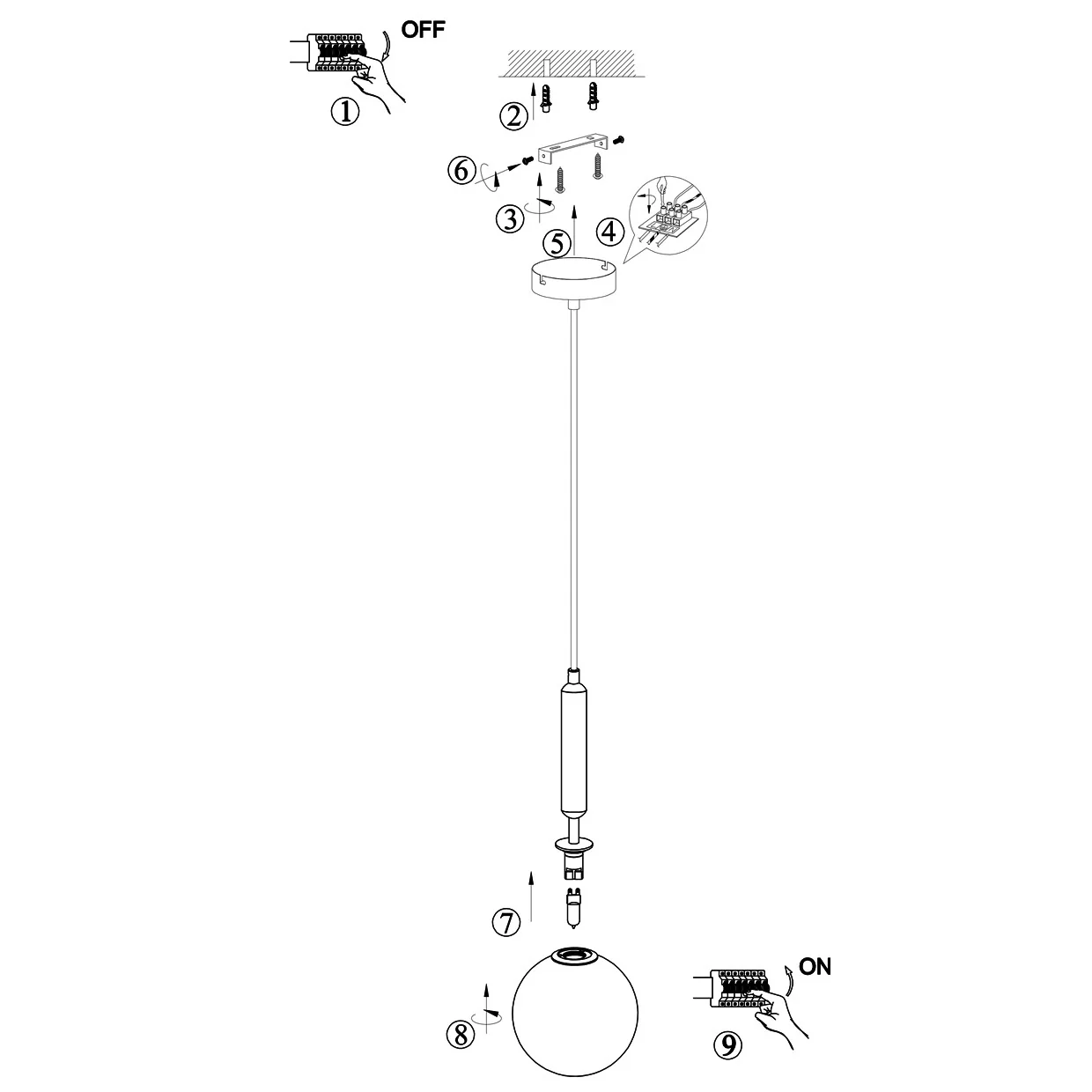 La instalación es sencilla: fija el cable al techo con el sistema estándar de rosace y ajusta la altura hasta 240 cm. Recomendamos un electricista para conexiones seguras, y no requiere herramientas especializadas.