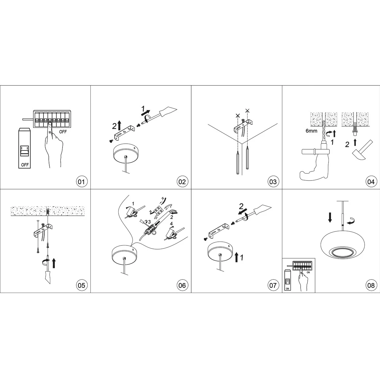 La instalación es sencilla: conecta el cable de 1,5 m al techo con el soporte incluido. Requiere un electricista para fijar el portalámparas LED. Toma unos 30 minutos y se adapta a la mayoría de techos estándar.