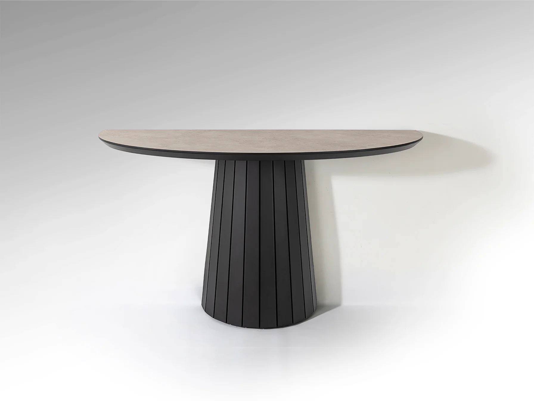 ¿Buscas una pieza que defina el carácter de tu recibidor o salón? La consola Koria de Schuller no es solo un mueble, es una declaración de intenciones. Su diseño audaz, que fusiona la frialdad del negro mate con la textura pétrea, crea un punto focal que atraerá todas las miradas. Imagina llegar a casa y ser recibido por esta obra de arte funcional, un espacio donde depositar tus llaves, exhibir tus objetos más preciados o simplemente disfrutar de su presencia imponente.