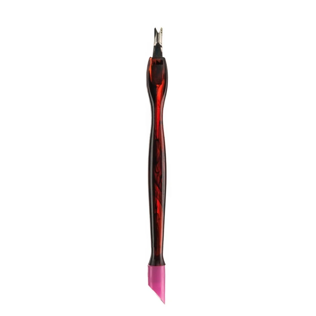 El Corta cutículas con goma color rojo es la herramienta perfecta para cortar cutículas de manos. Fabricado en plástico de color rojo con una punta de goma.