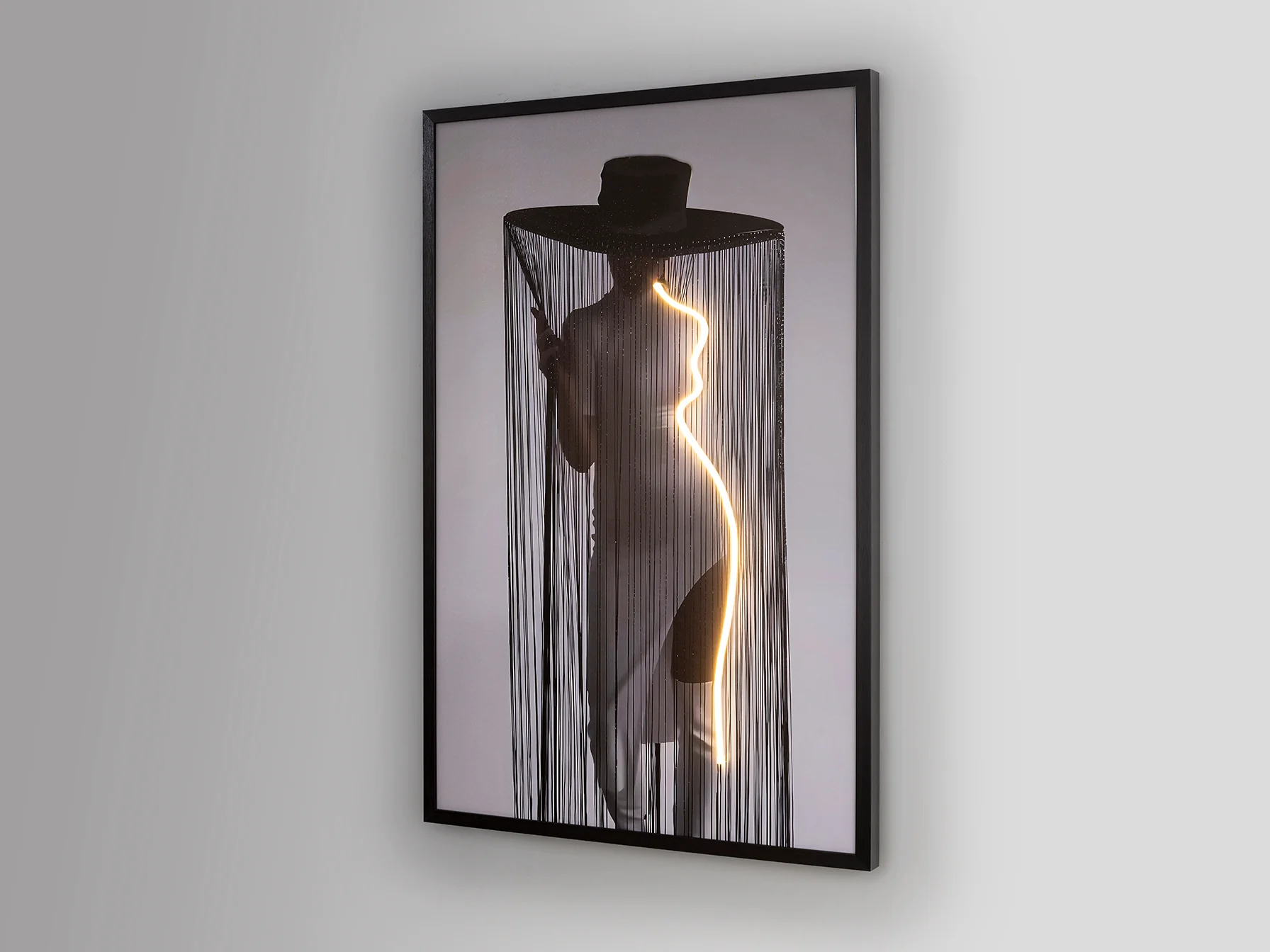 Schuller, sinónimo de calidad premium y diseño exigente, ha creado el cuadro Diva utilizando materiales de primera línea. El lienzo impreso de alta resolución captura la esencia de la figura femenina con sombrero, mientras que el marco de DM en color negro proporciona un contraste elegante y una estructura robusta. La integración de la tira de luz LED decorativa es impecable, creando un halo luminoso que realza la imagen y añade profundidad al conjunto. El acabado impreso garantiza la durabilidad de los colores y la nitidez de los detalles, asegurando que esta obra de arte conserve su belleza a lo largo del tiempo. La combinación de lienzo, DM y LED se traduce en una pieza ligera pero resistente, fácil de colgar y disfrutar.