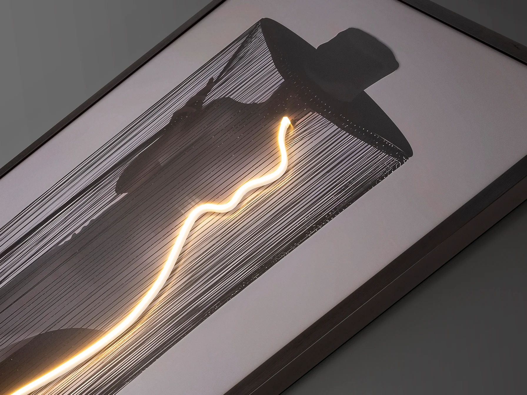 El cuadro Diva incorpora una tira de luz LED decorativa que emite una luz suave y cálida, ideal para crear un ambiente relajante y acogedor. No es una luz intensa, sino más bien ambiental.
