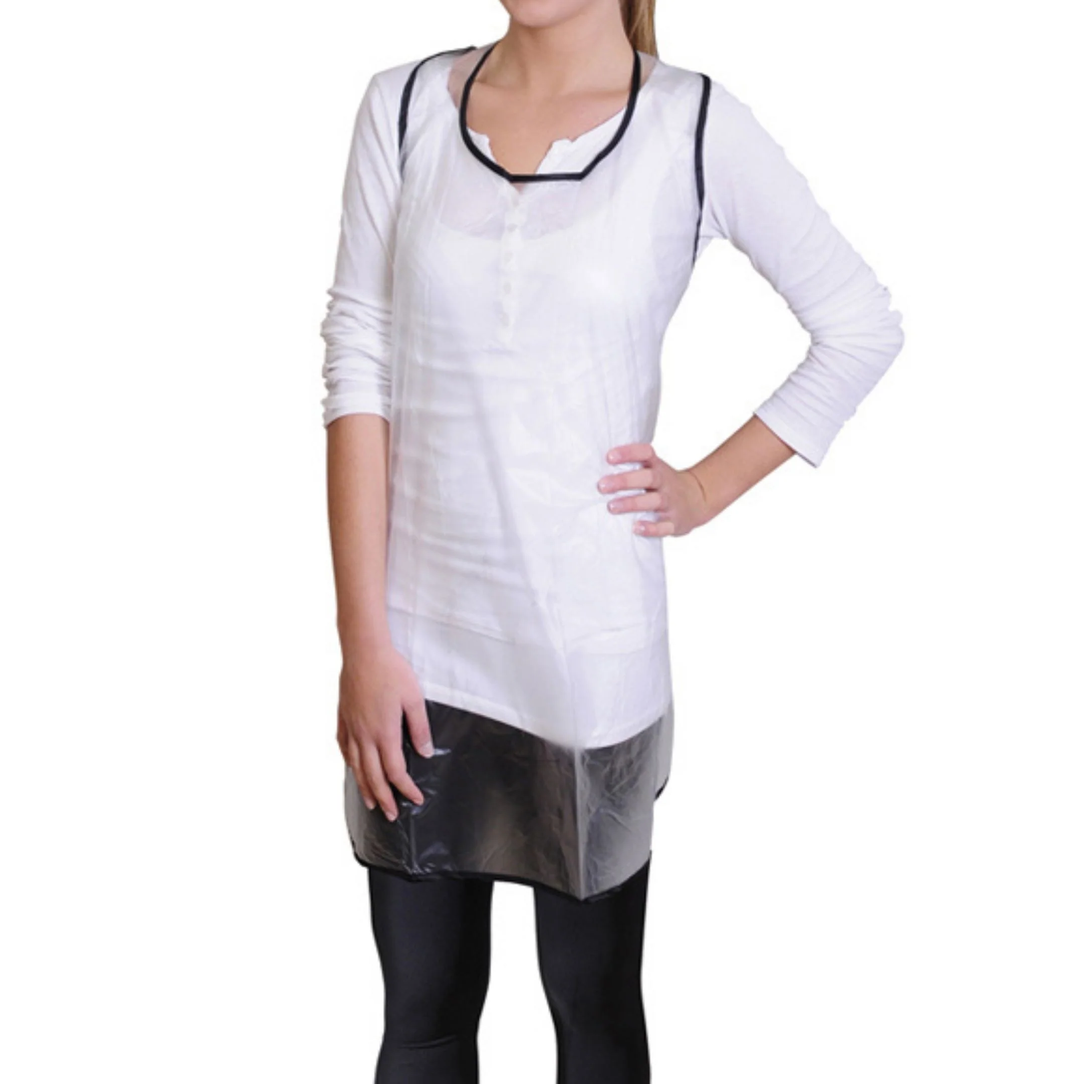 El Delantal transparente está fabricado en PVC muy flexible, impermeable y antimanchas con ribete cosido en color negro. Ajustable con cintas a la espalda.