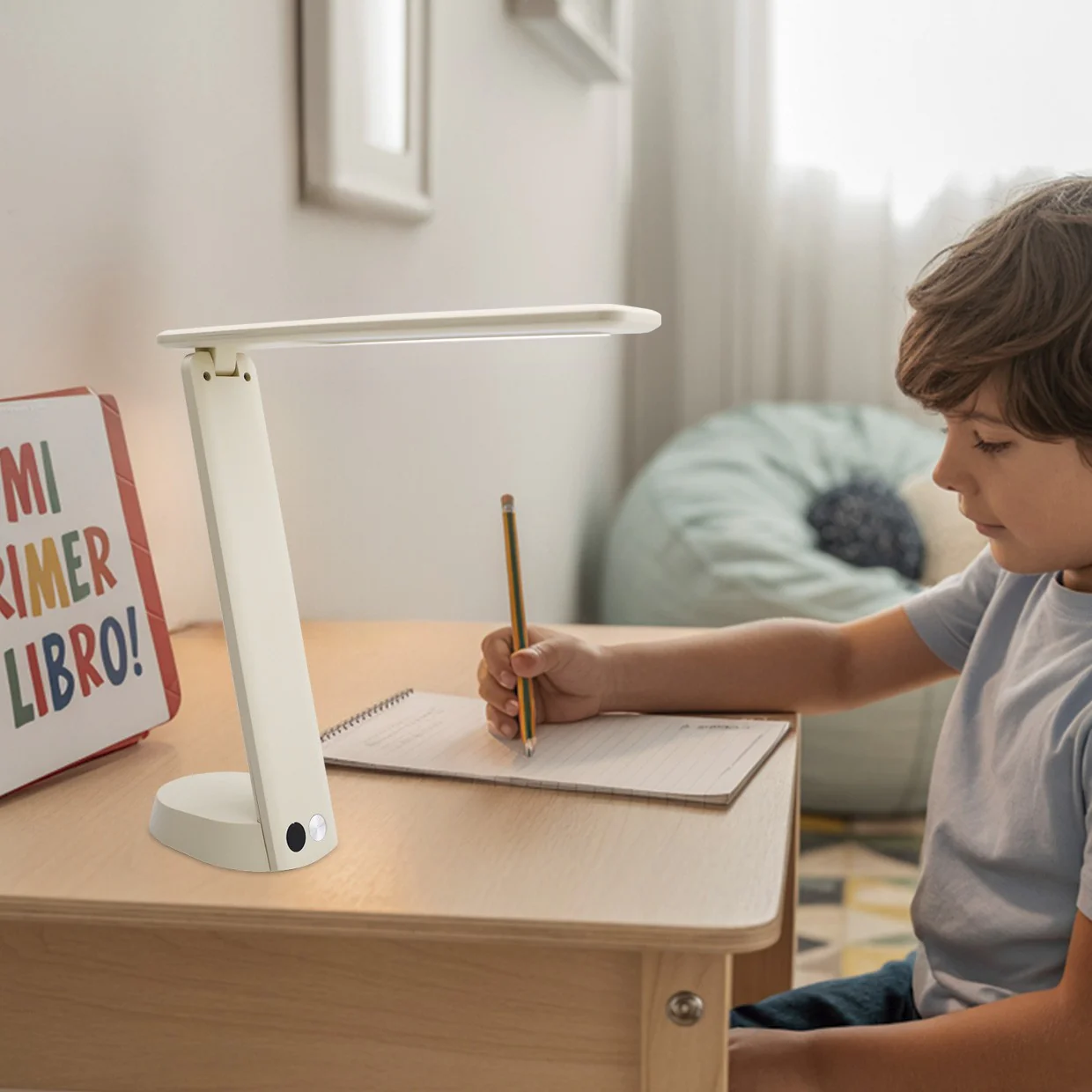 Este flexo plegable no solo es ligero, sino que su diseño en acrílico beige resiste el uso diario mientras proporciona 448 lúmenes de luz eficiente. La regulación en 3000K (cálida), 4000K (neutra) y 6500K (fría) te permite ajustar según la actividad, ahorrando energía y adaptándose a tus necesidades visuales sin esfuerzo.