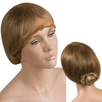 Gorro de noche sin cinta de color castaño claro. Su red es resistente y es ideal para mantener el peinado intacto durante la noche.