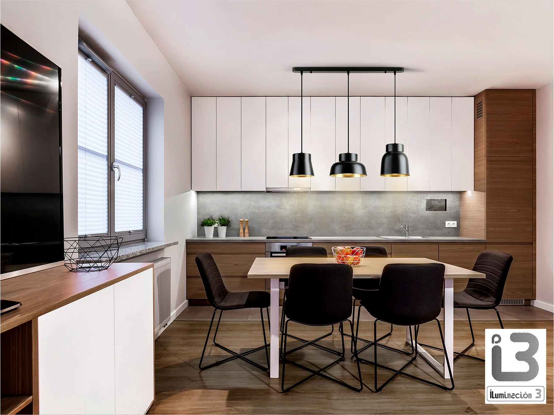 Imagina una lámpara que no solo ilumina, sino que define el carácter de tu cocina o comedor. La lámpara colgante I3-Vulcano de Schuller, con su diseño industrial y elegante combinación de negro mate y dorado, transforma cualquier ambiente en un espacio moderno y sofisticado. Olvídate de la iluminación monótona y da la bienvenida a un punto focal que captura la atención y realza la belleza de tu hogar. Esta lámpara de 3 luces no solo proporciona una iluminación funcional, sino que también añade un toque de distinción y estilo a tu decoración.