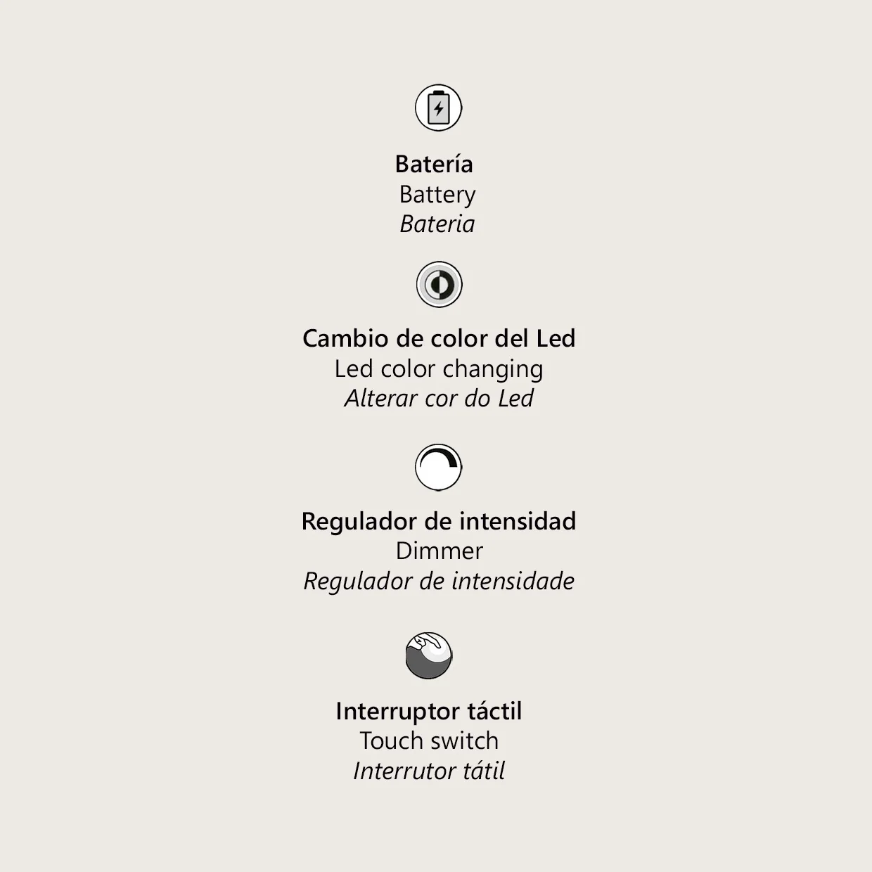 Características clave de la lámpara Habana con interruptor táctil y batería