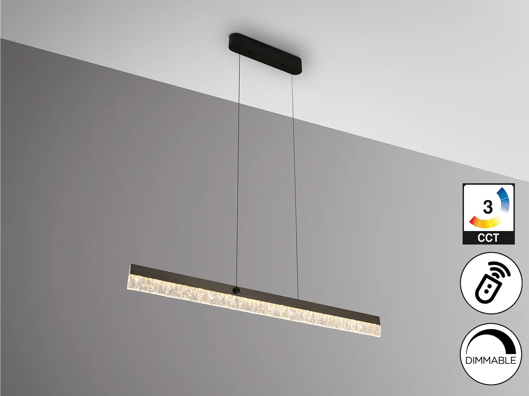 La lámpara Ixias ha sido diseñada para ofrecer una experiencia de uso intuitiva y personalizable. Gracias a su sistema de altura regulable, puedes ajustar la lámpara a la altura perfecta para tu espacio, ya sea sobre una mesa de comedor o en un salón con techos altos. El mando a distancia incluido te permite controlar la intensidad de la luz y la temperatura de color (CCT) de forma remota, adaptando la iluminación a tus necesidades y preferencias. Con una potencia de 24W y 1.600 lúmenes, la lámpara Ixias proporciona una iluminación eficiente y potente, creando el ambiente perfecto para cada ocasión.
