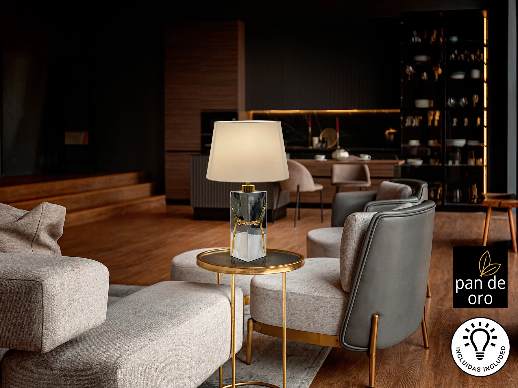 Lámpara Sobremesa Cromo-Pan Oro Ocean Schuller