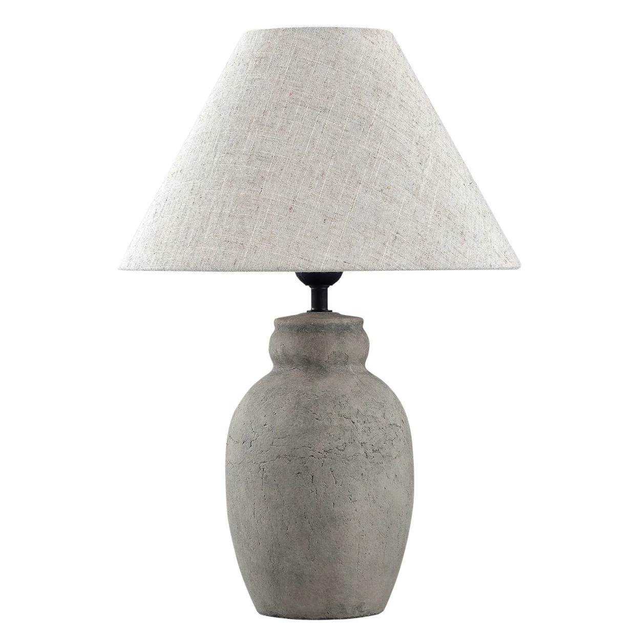 Esta lámpara combina materiales resistentes con un diseño funcional, permitiendo que integres iluminación de calidad en tu rutina diaria. La base de cerámica gris aporta estabilidad y un estilo contemporáneo, mientras que la pantalla de tela asegura una distribución uniforme de la luz, ideal para entornos donde la comodidad visual es clave.