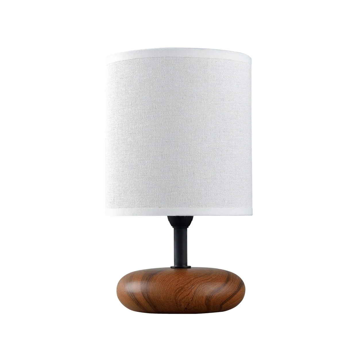 Esta sobremesa combina materiales naturales con funcionalidad práctica, permitiéndote iluminar espacios pequeños de manera eficiente. Su base de madera oscura aporta calidez y estabilidad, mientras que la pantalla de tela distribuye la luz uniformemente, reduciendo sombras y creando un ambiente acogedor para ti.