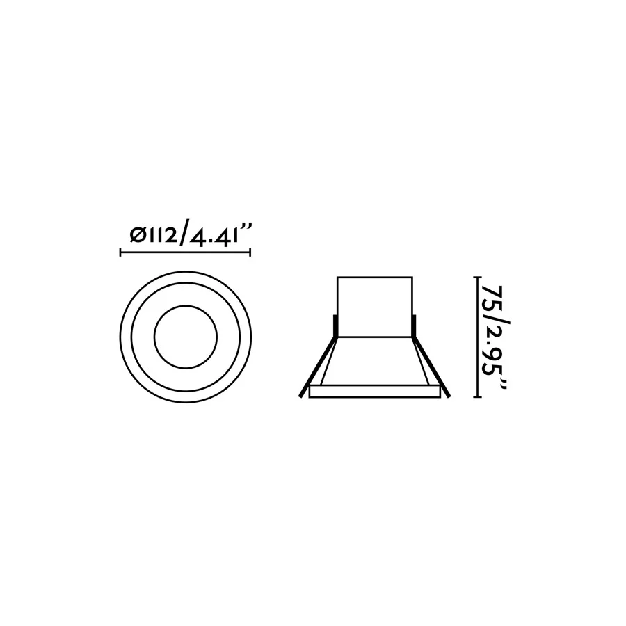 - Diseño Compacto: Diámetro de 112mm y altura de 75mm, perfecto para techos estándar con grosor de 8-10mm, sin comprometer el espacio.