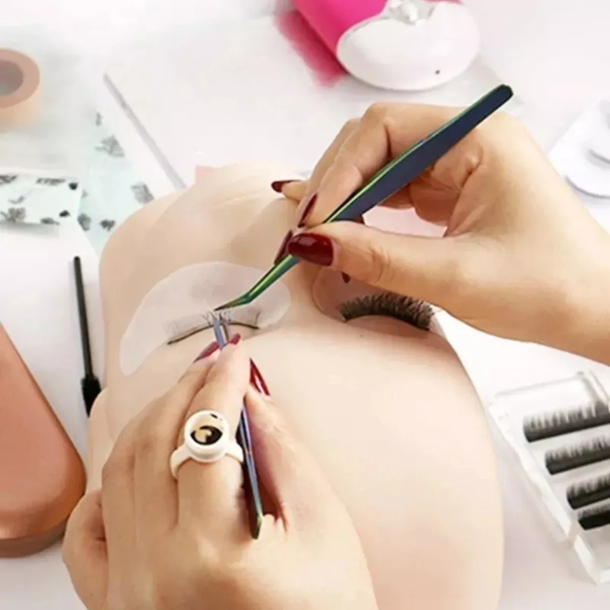 La cabeza de entrenamiento de maniquí de silicón tiene una textura superficial suave y realista, asimilativa de la piel que te ayudará en el entrenamiento de aplicación de pestañas.
