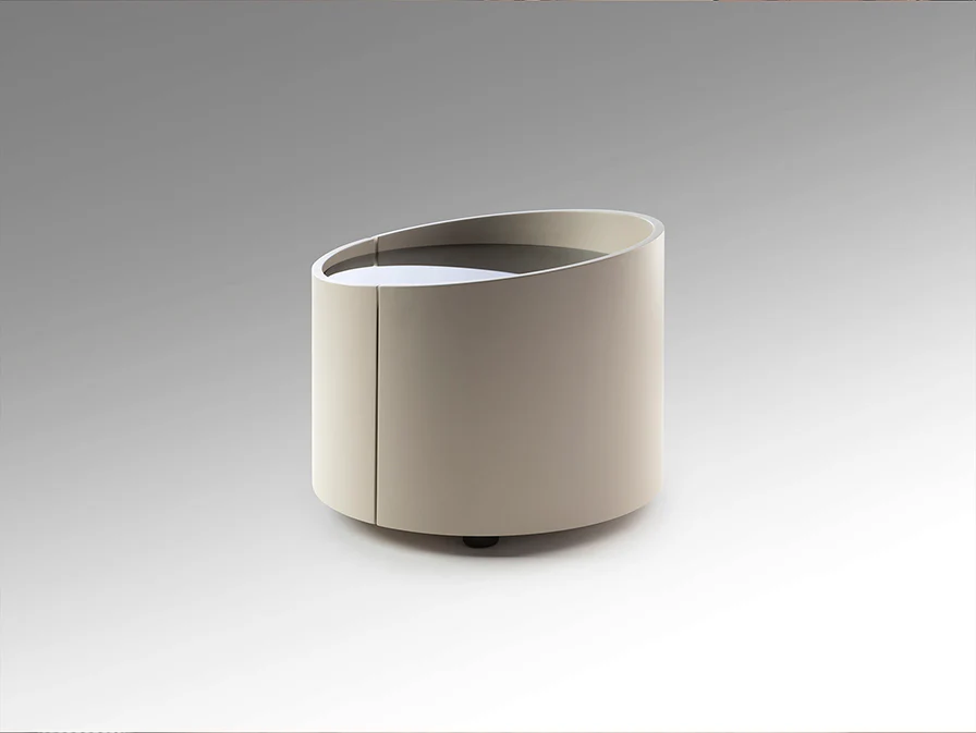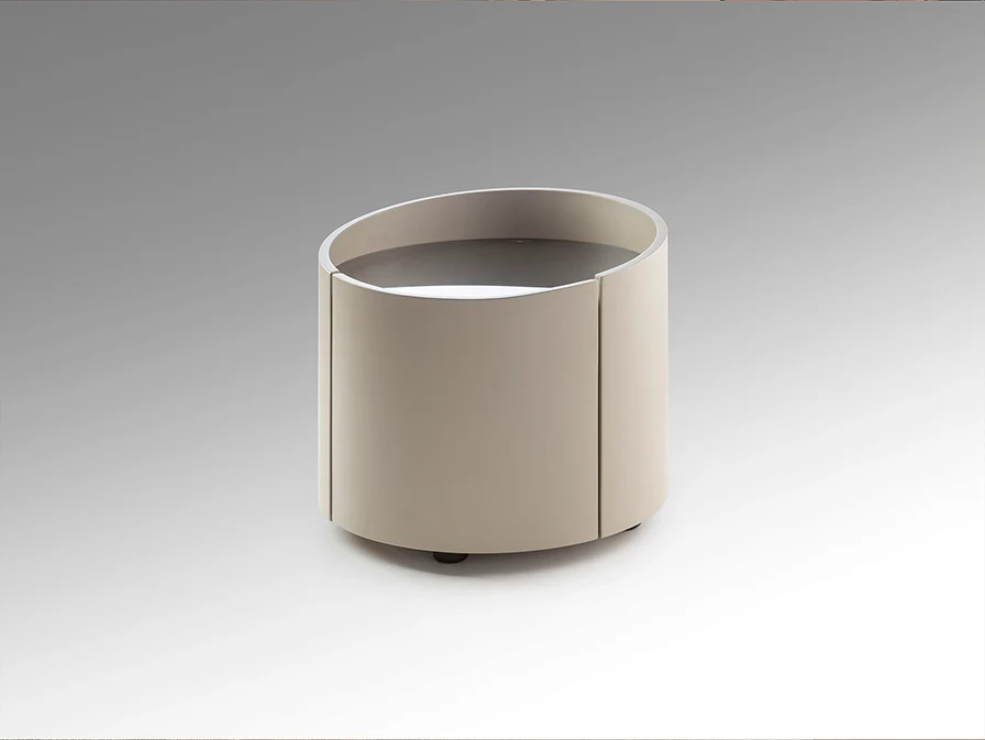 La mesita de noche Iza de Schuller destaca por su construcción en madera contrachapada de alta calidad, un material que garantiza durabilidad y resistencia al paso del tiempo. El acabado en caqui claro aporta luminosidad y calidez al dormitorio, mientras que la tapa de cristal smoke añade un toque de elegancia y modernidad. Schuller, sinónimo de calidad premium y diseño exigente, ha cuidado cada detalle para crear una pieza que no solo es funcional, sino también una declaración de estilo. La forma redonda suaviza las líneas y crea una sensación de fluidez visual, perfecta para espacios que buscan un ambiente relajado y acogedor.