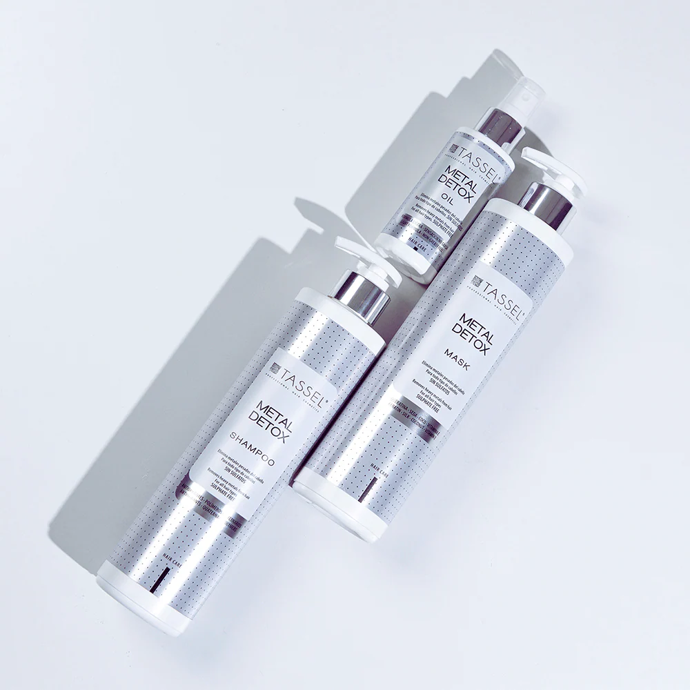 Presentamos METAL DETOX, la innovadora línea capilar de Tassel Professional Hair Cosmetics, específicamente formulada para abordar este desafío profesional.