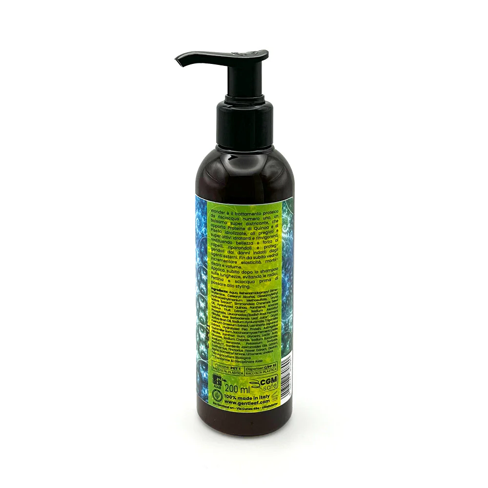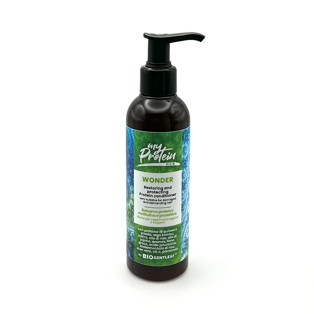 My Protein Wonder Acondicionador es un tratamiento proteico ideal para cabellos finos, con porosidad alta, media y baja. Su fórmula avanzada, con proteínas de quinoa, guisante, katira, fermentado de arroz y aceites naturales, nutre y fortalece profundamente, restaurando la vitalidad y suavidad del cabello. Este acondicionador desenreda eficazmente, mejora la elasticidad y protege contra el daño del calor, sol y contaminación, dejando el cabello manejable, brillante y saludable.