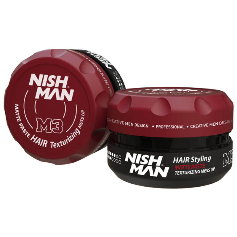 Dale a tu cabello un acabado mate y natural con la pasta mate Nishman M3. Su fijación flexible y aroma fresco protegen tu cabello de malos olores, y su fórmula soluble en agua se limpia fácilmente.