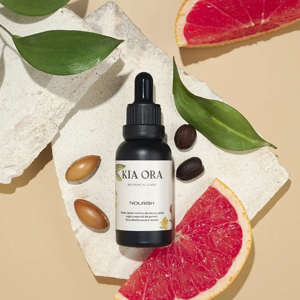 El Aceite Capilar Nourish de Kia Ora es el tratamiento ideal para todo tipo de cabello, especialmente para quienes buscan nutrición, suavidad y un brillo saludable. Su combinación de marula, jojoba, argán y pomelo ofrece una fórmula rica en antioxidantes y ácidos grasos esenciales que restauran la elasticidad del cabello, combaten el encrespamiento y protegen sin apelmazarlo.