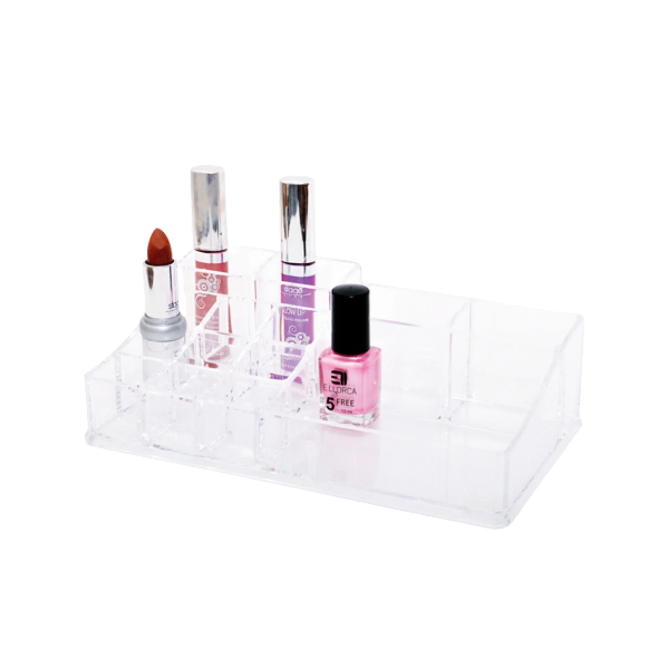 Es un organizador ideal para esmaltes, maquillaje, barras de labios, máscaras de pestañas, etc.
