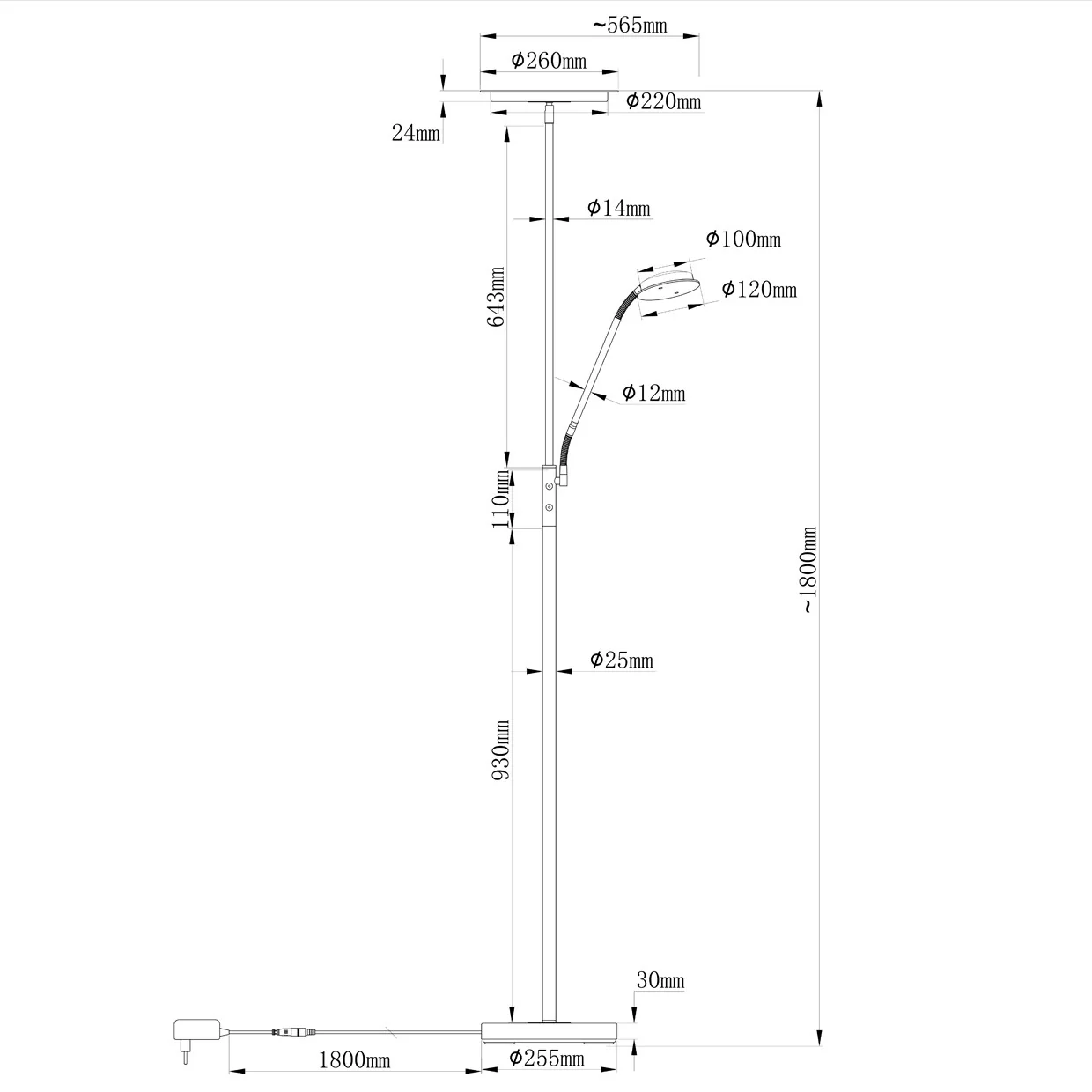 En el salón principal, colócalo junto al sofá para iluminar reuniones familiares o ver películas con luz ambiental ajustable. En una oficina en casa, el lector LED de 300 lúmenes te ayuda a concentrarte en documentos sin deslumbramientos, mientras la luz principal de 3180 lúmenes ilumina el escritorio entero. También es perfecto para rincones de lectura en dormitorios o salas de espera en pequeños comercios, donde su orientación versátil adapta la iluminación a diferentes usos. Con 180 cm de altura, se adapta a techos estándar y espacios medianos sin dominar el entorno.
