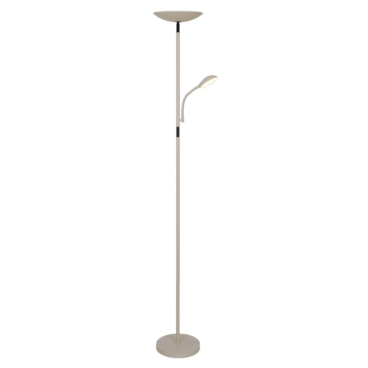 ¿Necesitas una lámpara que adapte la luz a cada momento en tu espacio de estar? El pie de salón LED KOS arena de ALEMAR resuelve esto con su diseño dual que combina iluminación general ajustable y un foco lector preciso. Imagina pasar de una luz cálida para relajarte a un tono frío para leer cómodamente en el sofá, todo con un solo pie elegante en metal que integra perfectamente en tu decoración. Con esta solución, transformas tu salón en un área funcional y acogedora, sin complicaciones de cables ni instalaciones.