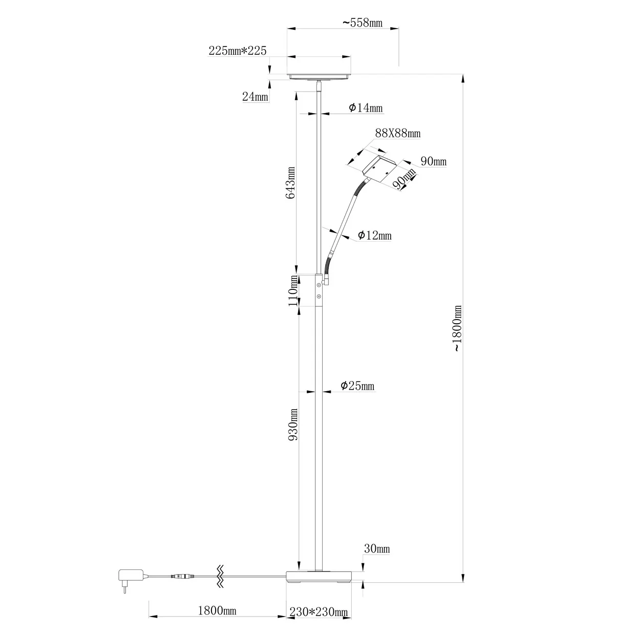 Ficha Técnica del Pie de Salón LED Lamber Negro