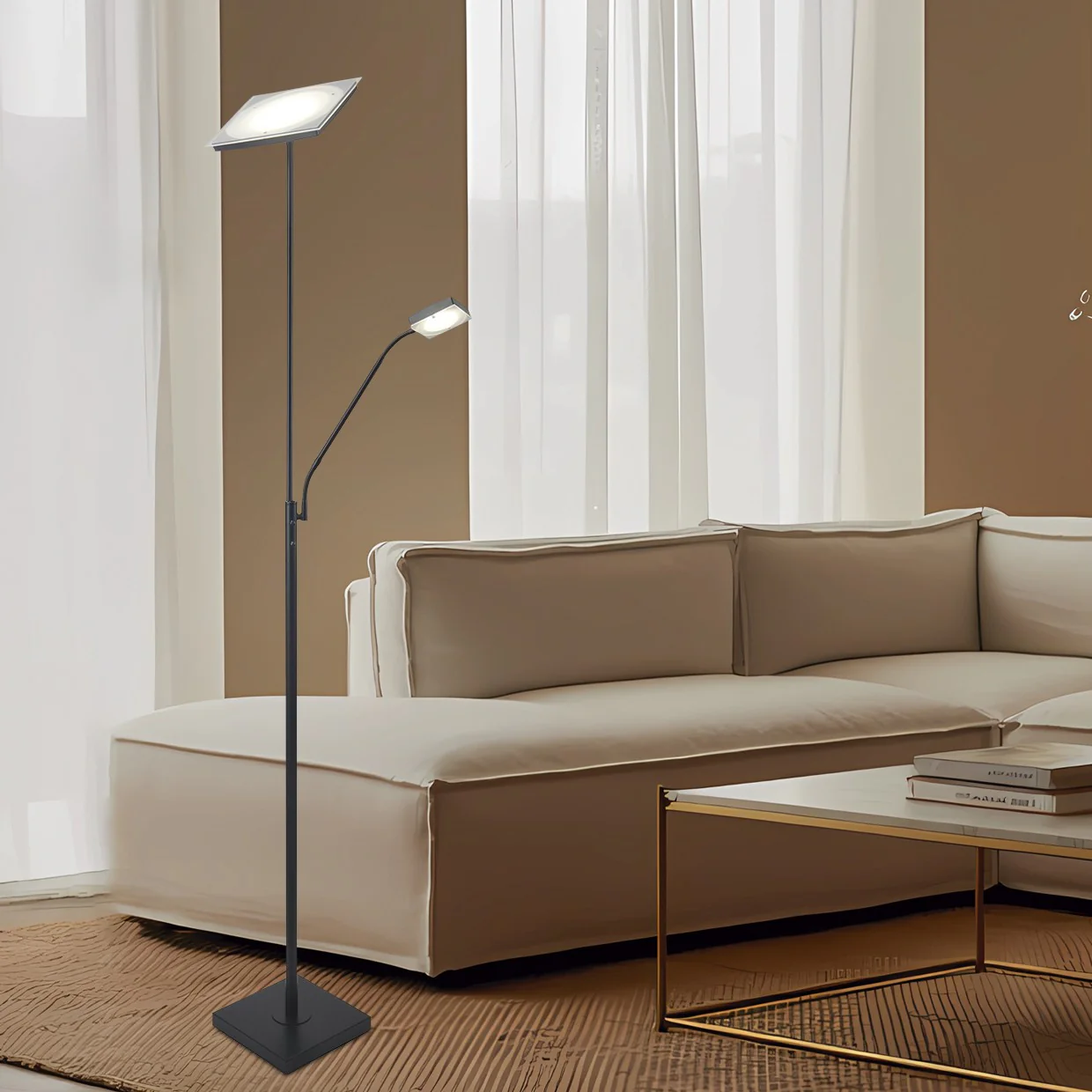 Este pie de salón LED es perfecto para múltiples escenarios: en el salón principal, ilumina reuniones familiares con su luz general amplia; en la oficina en casa, el LED de lector enfocado mejora la productividad durante horas de trabajo o estudio. También destaca en espacios de lectura nocturna, donde su temperatura de color 4000K reduce el cansancio ocular. Con altura de 180 cm, se adapta a techos estándar y rincones versátiles, ofreciendo flexibilidad en hogares, apartamentos o incluso comercios pequeños que buscan iluminación eficiente sin complicaciones de instalación.