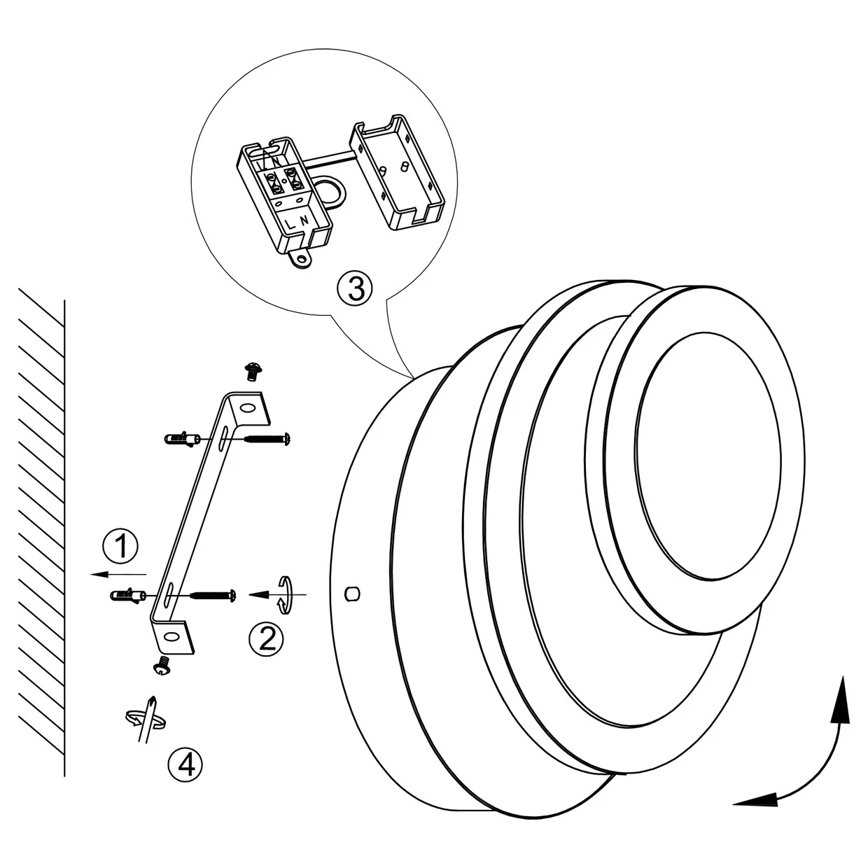 La instalación es directa: fija la base a la pared con tornillos incluidos y conecta al cableado estándar. No requiere transformador adicional gracias al LED integrado, y se completa en menos de 30 minutos para la mayoría de usuarios.