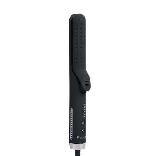 La Plancha Cool Fan con placas cerámicas está fabricada con una tecnología novedosa de aire frío, de función dual para alisar y rizar el cabello. Cuando se activa el botón FAN se libera aire frío para fijar el rizo de forma rápida y protege el cabello de la exposición al calor. Forma cilíndrica y placas cerámicas para ejercer presión y repartir la temperatura uniformemente de forma constante sobre todo el cabello. Consigue un look a tu gusto tanto si prefieres el cabellos liso o rizado.