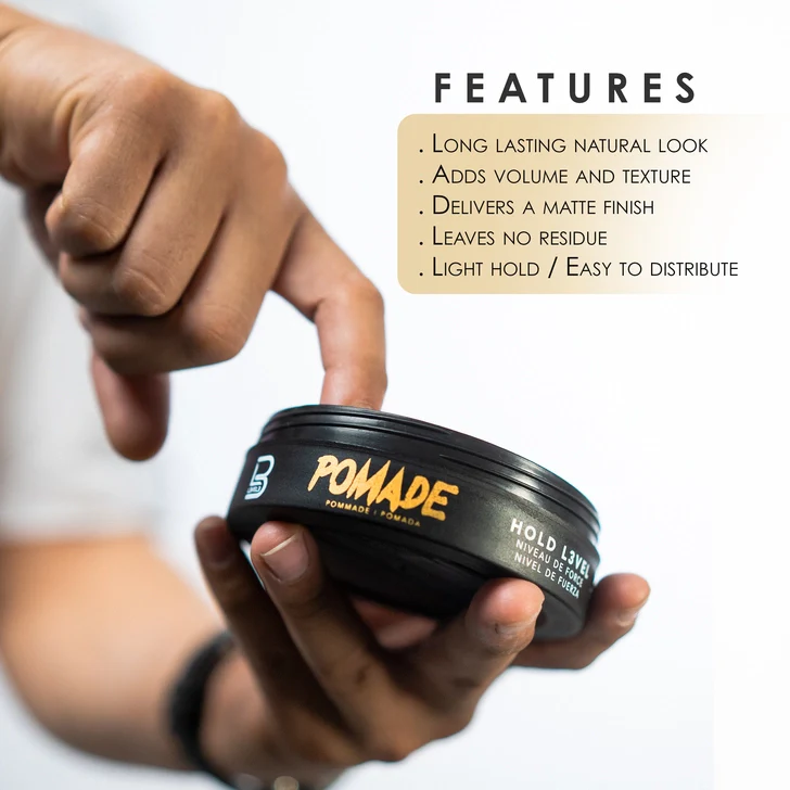 Consigue un brillo brillante y duradero y una sujeción extrema con la pomada transparente con infusión de queratina LV3TM Brand TM Hair Styling Pomade. La fórmula de peinado sin residuos de nivel 3 se seca ligera y limpia para una sensación fresca, mientras que el agradable aroma da a tus sentidos un impulso y la libertad de volver a peinar durante todo el día. Los ingredientes no proporcionan pegajosidad, frizz ni sensación de cabello pesado, solo cabello irresistiblemente liso y brillante.