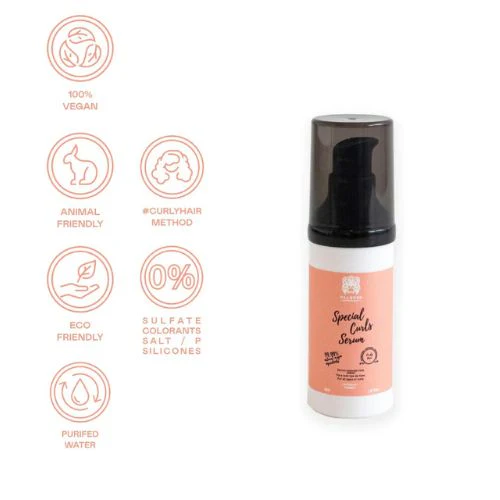 El Serum especial rizos Método Curly está compuesto en un 99,99% de ingredientes de origen natural. No contienen sulfatos, siliconas, parabenos, ceras, aceites minerales y alcoholes secantes.