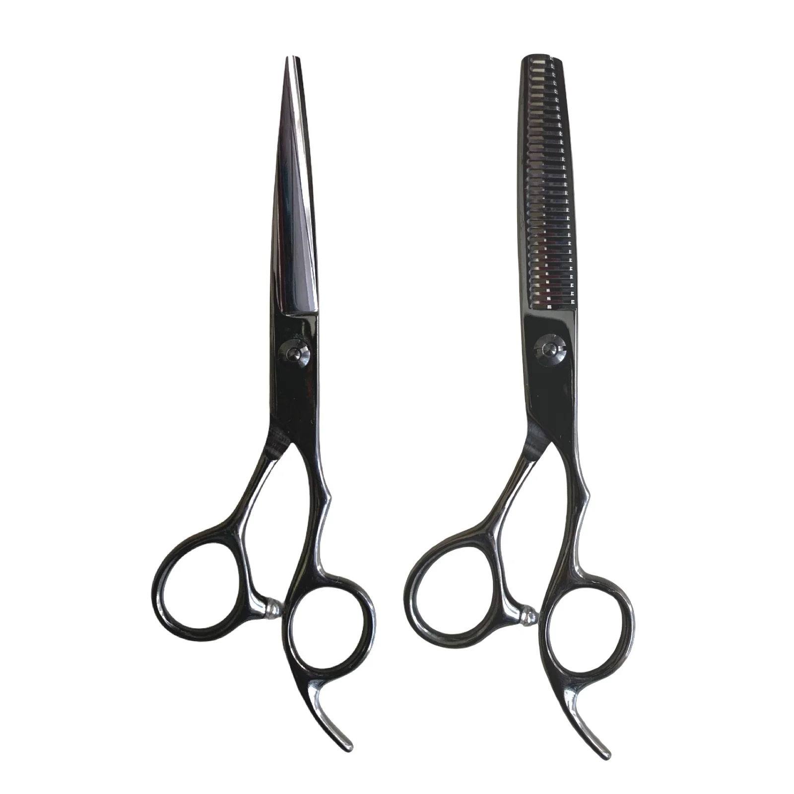 Este set es el dúo perfecto para cualquier barbero o estilista que quiere un corte limpio, suave y con terminaciones de nivel. Incluye una tijera de corte filo navaja de 6 pulgadas, ideal para deslizamientos suaves y cortes precisos, más una tijera entresacadora de 30 dientes que te ayuda a reducir volumen, suavizar transiciones y texturizar el pelo sin dejar líneas marcadas.