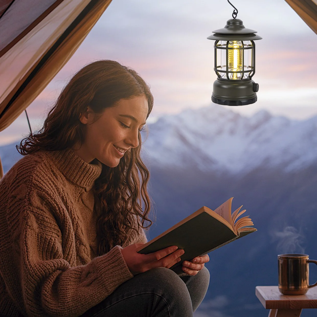 Por ejemplo, cuélgala en una rama durante un picnic familiar y ajusta su brillo para leer o charlar bajo luz suave.
