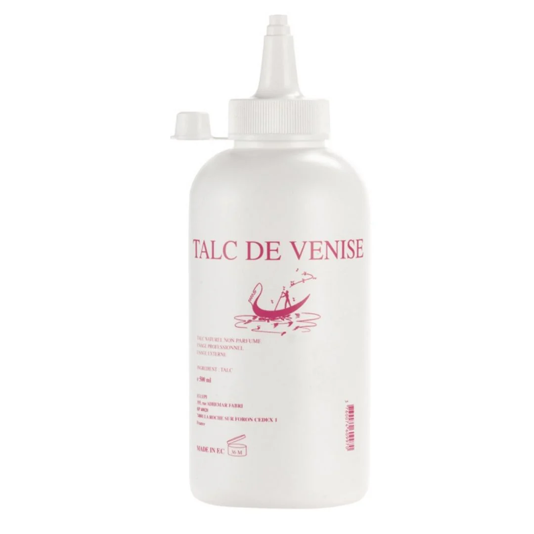 Talco de Venecia en botella para llenado de brochas talqueras con 280g. El talco de Venecia es natural y no contiene perfume. Ideal para prevenir la piel de irritaciones, escoceduras y rojeces ya que le aporta suavidad y frescura a la piel. Envase que tiene la boquilla en forma de biberón perfecto para rellenar las brochas de uso profesional y con tapón para un cierre hermético y seguro.