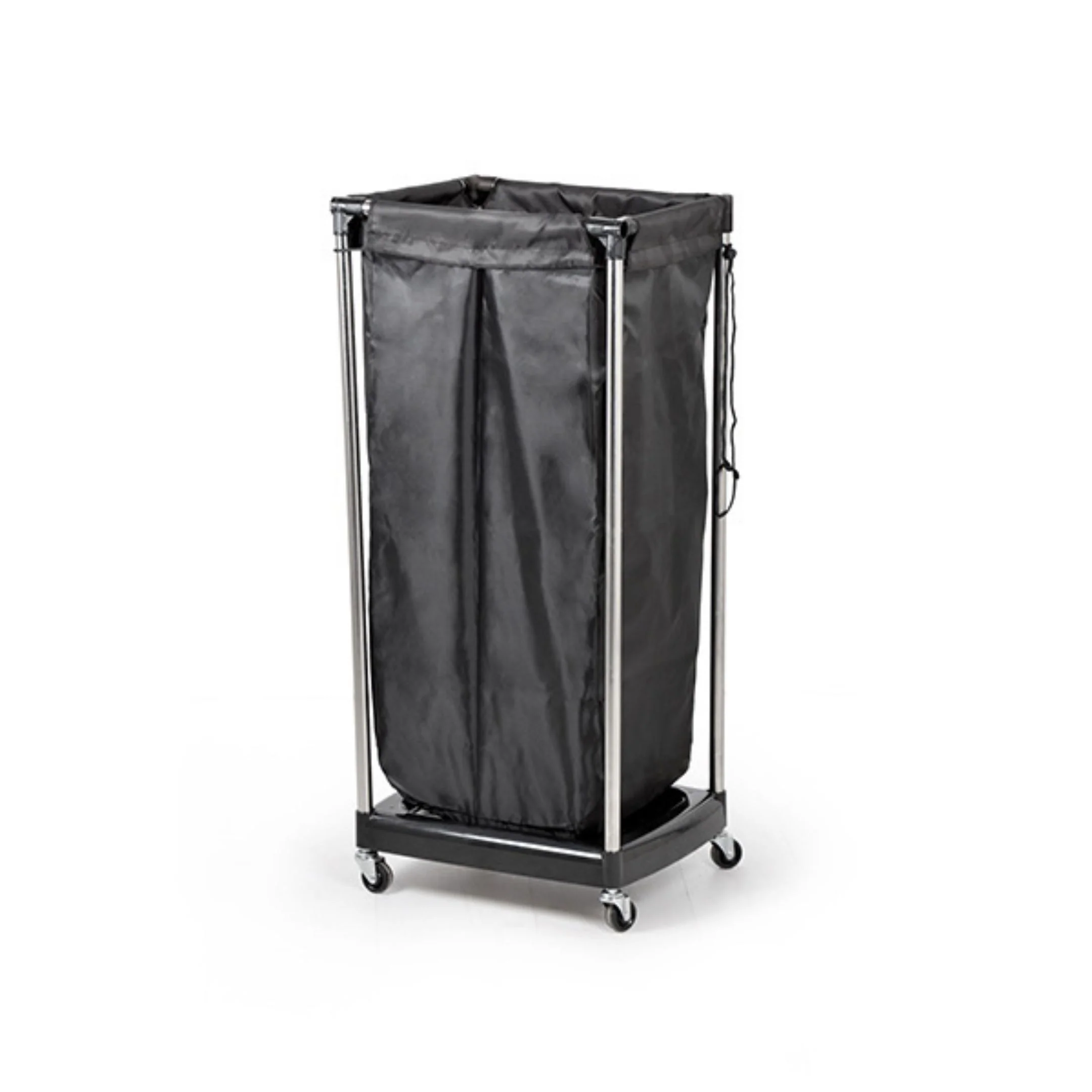 El Toallero de tela negro Modelo Oby con ruedas está diseñado especialmente para ser utilizado en salones de belleza. Contiene una bolsa extraíble que se puede cambiar fácilmente y ofrece un espacio de almacenamiento limpio para las toallas usadas. Tiene ruedas para poder moverlo según nuestras necesidades.