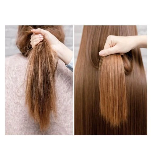 - Keratina, que aumenta la sedosidad del cabello y produce una hidratación profunda, intensifica el brillo y ayuda a sellar las puntas abiertas. Mantiene el color y mejora la salud capilar.