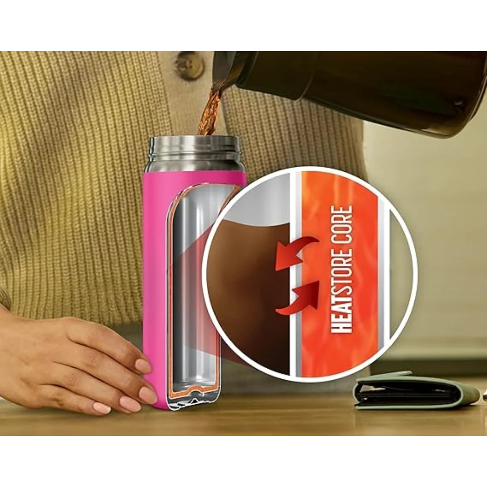 Un vaso vibrante y llamativo, fabricado con aislamiento térmico de alto rendimiento que conserva la temperatura durante horas. Su tapa segura evita escapes y permite beber con comodidad. El acabado rosa fucsia resalta por su estilo juvenil y fresco. Perfecto para hidratación diaria, café, té o bebidas frías.