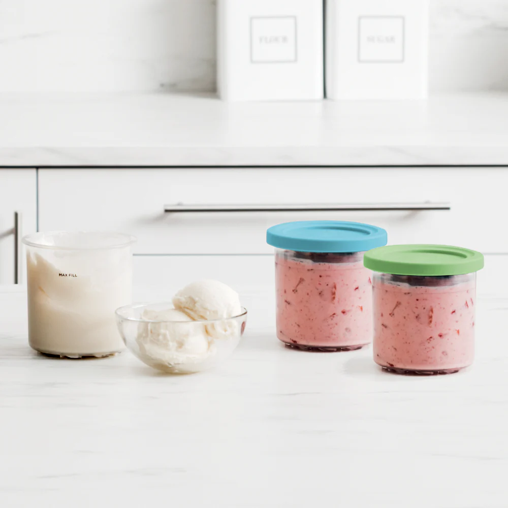 ¡Más helado, más variedad, más practicidad! Los vasos de 473 ml con tapas Ninja® te permiten preparar, guardar y disfrutar tus creaciones favoritas en cualquier momento. Diseñados especialmente para trabajar con la máquina Ninja® CREAMi®, estos vasos son perfectos para preparar helados, sorbetes, batidos y más, con tus propios ingredientes. Su tamaño ideal y tapa hermética garantizan frescura y orden en tu congelador.