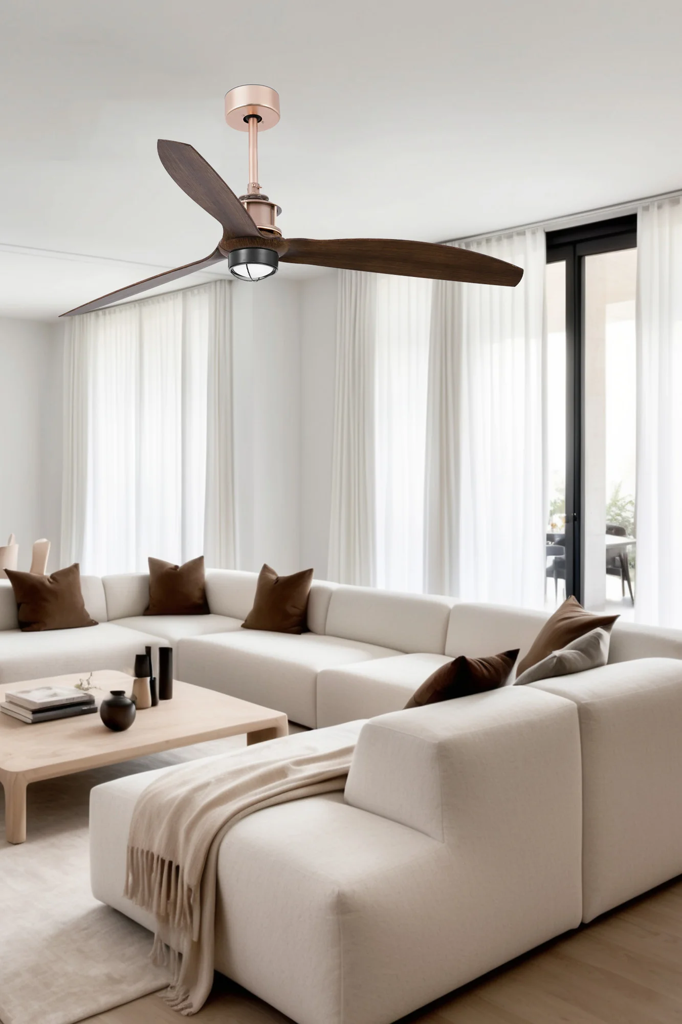 Ideal para familias que buscan confort todo el año en salones amplios o dormitorios, o para oficinas modernas donde la ventilación silenciosa y la iluminación integrada mejoran la productividad sin comprometer el estilo. Perfecto para renovar espacios con techos altos, ofreciendo frescura en verano y circulación de aire cálido en invierno.