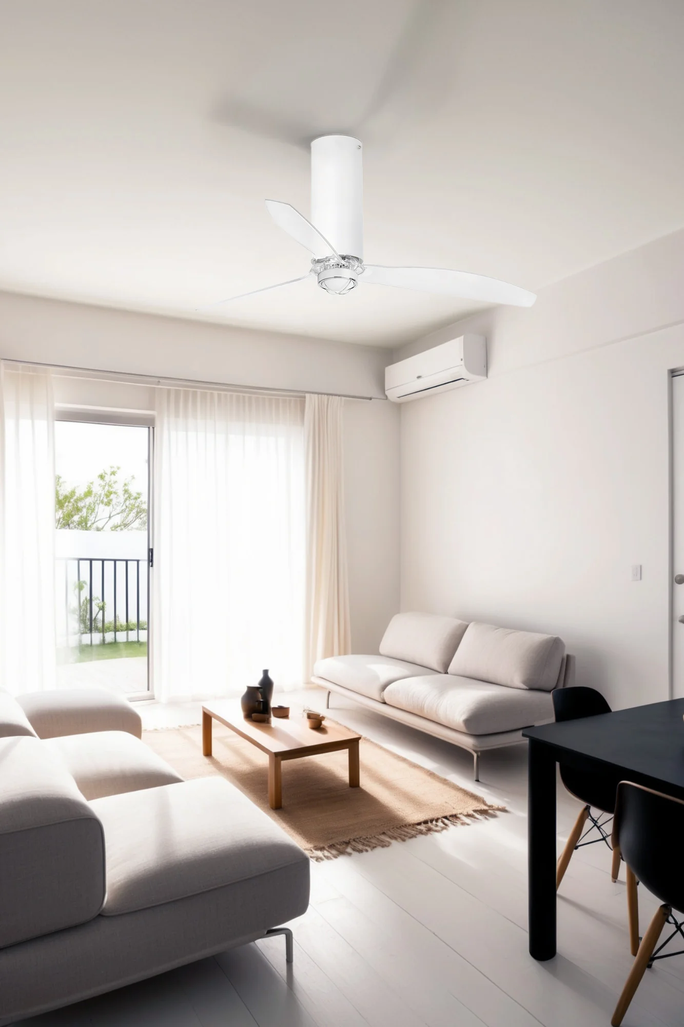 Ventilador con Luz LED TUBE FAN M LED Ventilador blanco mate/transparente WIZ es la solución perfecta para refrescar y iluminar tu hogar con elegancia y eficiencia. Imagina un verano donde el aire circula suavemente sin ruidos molestos, mientras una luz cálida de 3000K ilumina tus veladas familiares, creando un ambiente acogedor sin esfuerzo. Su motor DC de 6 velocidades y función inversa no solo ajusta el flujo de aire hasta 145 m³/min, sino que te permite mantener una temperatura ideal en invierno recirculando el calor, ahorrando energía y confort en cada estación. Con materiales como acero y cristal透parente, garantiza durabilidad y un diseño moderno que se integra en cualquier techo. Descubre la calidad superior de FARO en LUZGURU, tu tienda de iluminación y ventilación premium.