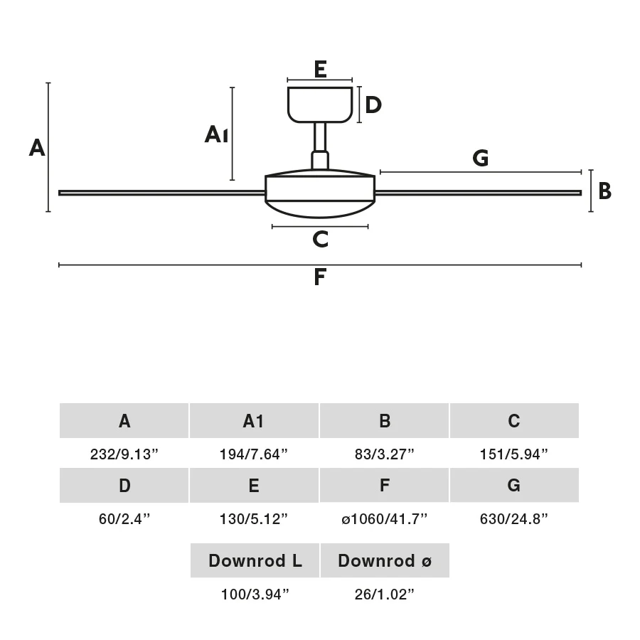 - Diámetro de 1060 mm y altura de 232 mm: Cobertura amplia para habitaciones medianas, fácil instalación en techos inclinados y peso ligero de 4.69 kg.