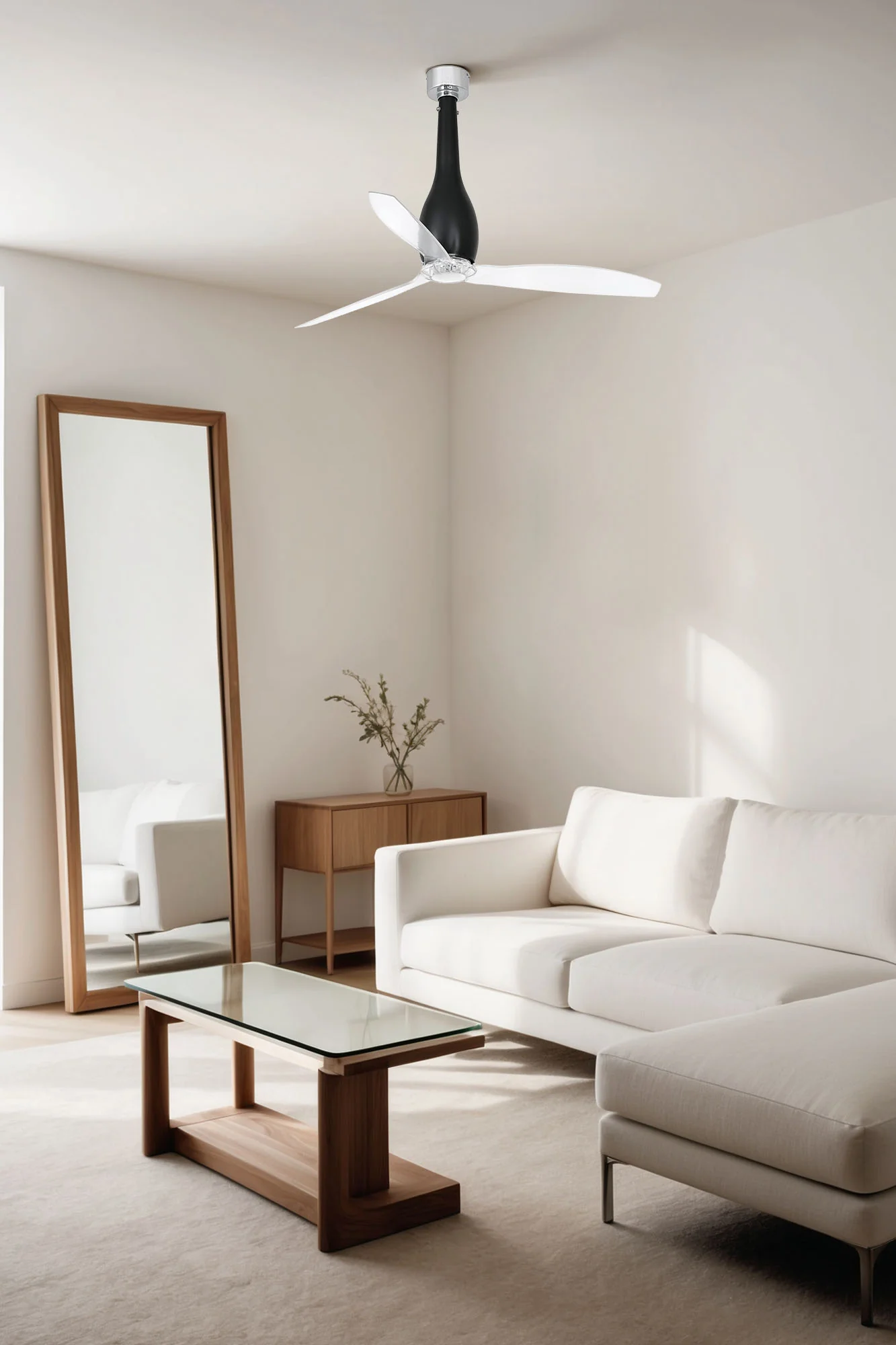 Ideal para familias que buscan ventilación eficiente en salones amplios o dormitorios, resolviendo problemas de calor en climas cálidos. Perfecto también para oficinas modernas donde el silencio y el control remoto aseguran productividad sin distracciones, o para entusiastas del diseño que valoran la estética negra mate y transparente en espacios contemporáneos.