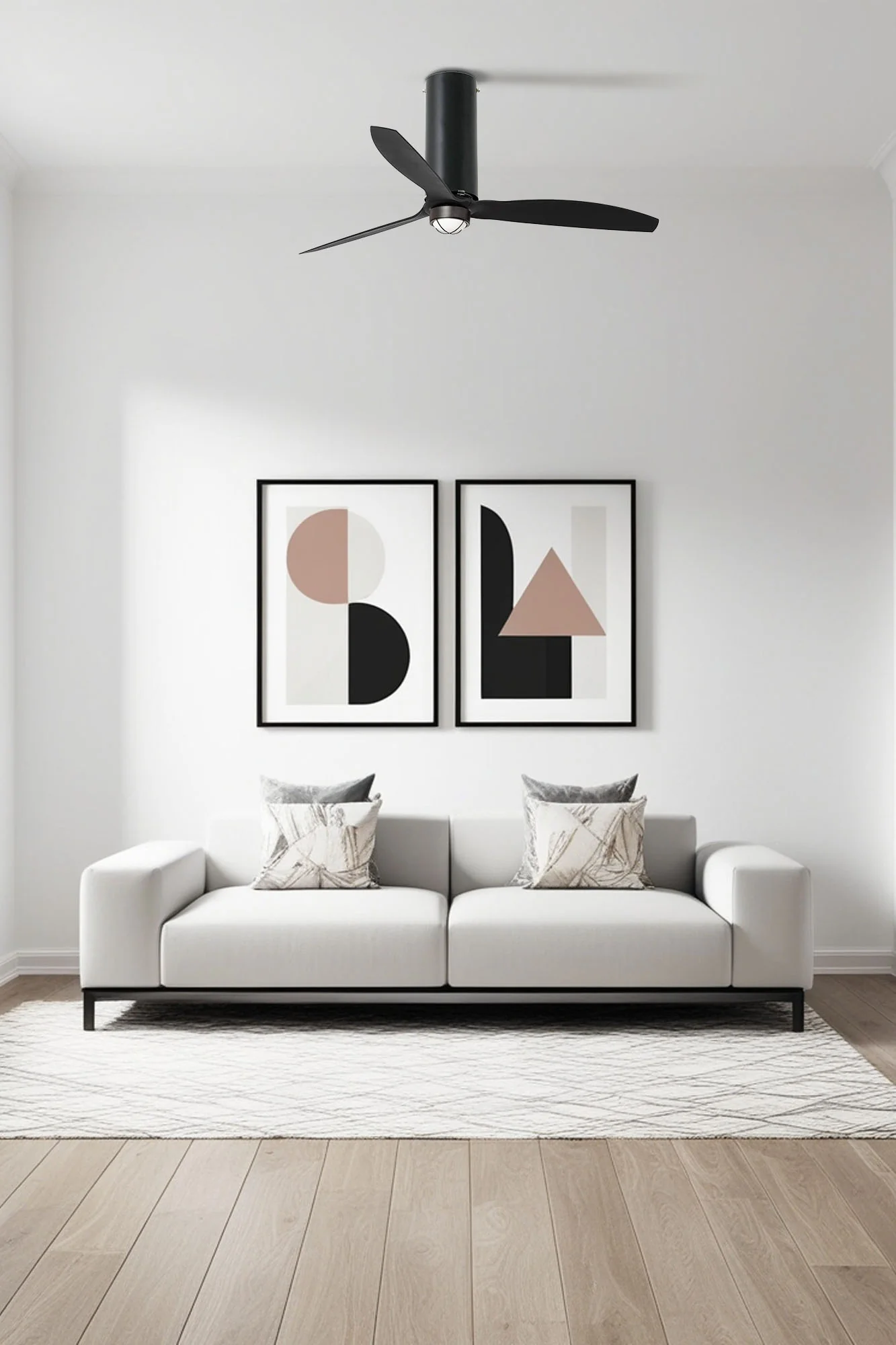 Ventilador de techo LED TUBE FAN M WIZ. Este ventilador negro mate no solo refresca tu espacio con sus 6 velocidades y flujo de aire de hasta 5143 CFM, sino que ilumina tu hogar con 709 lúmenes de luz cálida LED integrada, creando un ambiente confortable y eficiente. Imagina veranos sin calor sofocante ni facturas de luz elevadas, gracias a su motor DC silencioso de solo 27-42 dBA y control remoto para ajustar todo desde el sofá. En LUZGURU, descubre la calidad premium de FARO para una ventilación inteligente y luminosa.