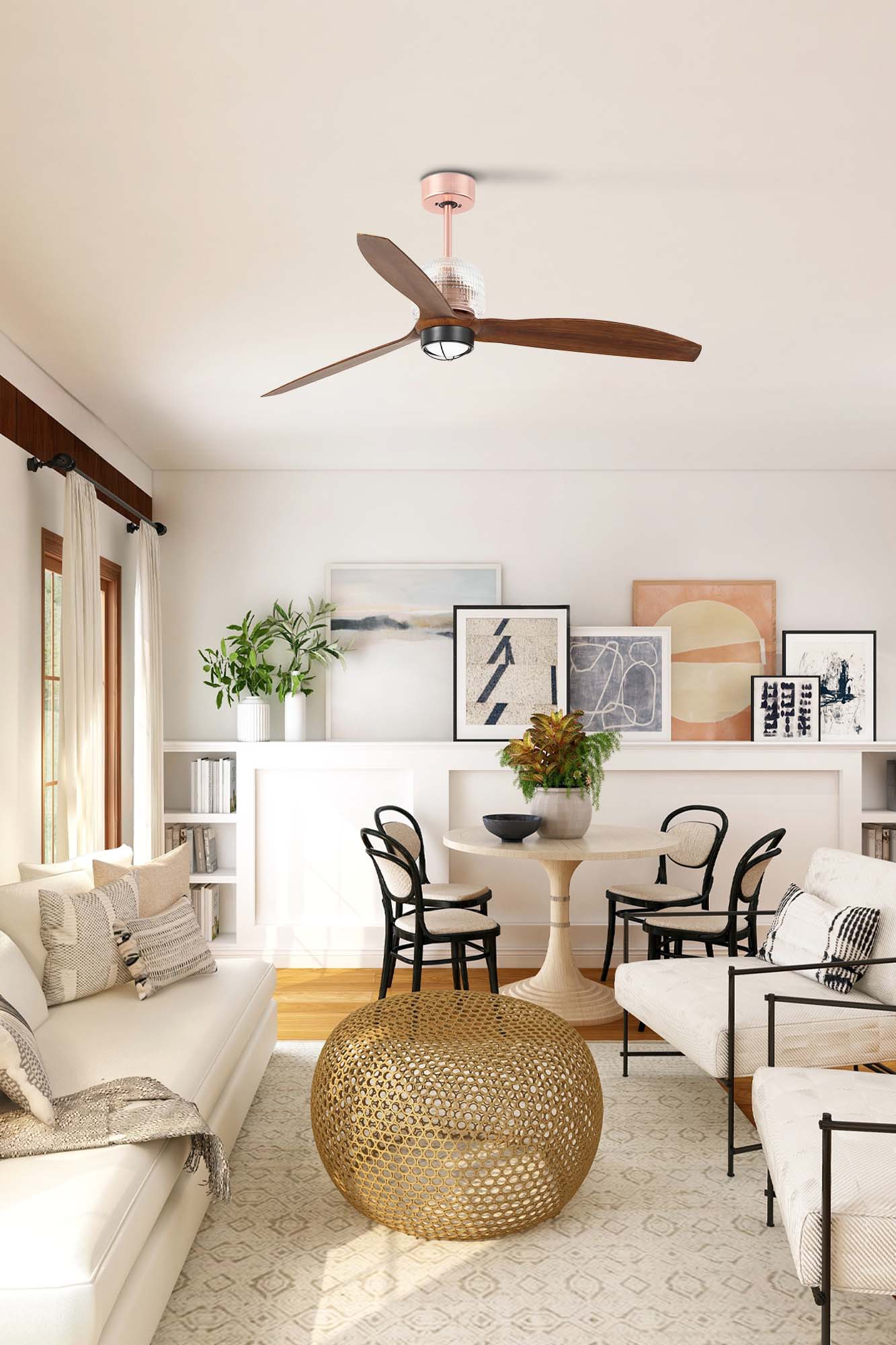 Ideal para familias que buscan confort en salones o dormitorios, donde el ventilador de techo con luz LED resuelve el calor estival y aporta iluminación suave. Perfecto también para oficinas modernas o espacios con techos inclinados, ofreciendo circulación de aire eficiente y diseño elegante que eleva la estética del hogar.