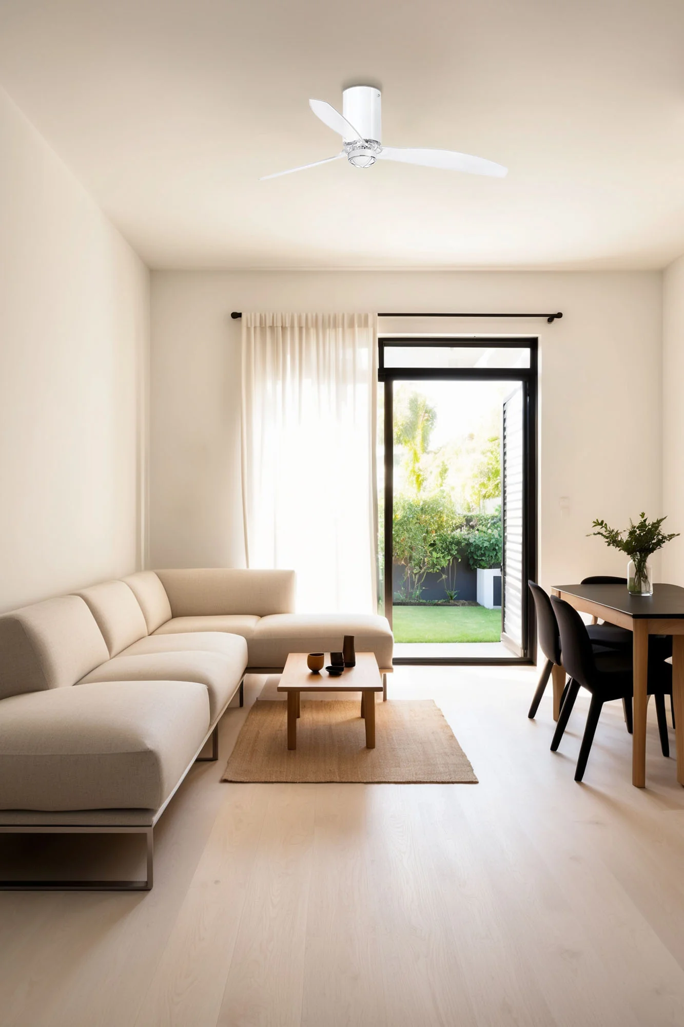 Ideal para familias que buscan versatilidad en salones o cocinas, donde refresca el aire en días calurosos y proporciona luz ambiental suave; también perfecto para oficinas en casa de profesionales que necesitan circulación eficiente sin distracciones ruidosas, o dormitorios de quienes valoran el control remoto para un descanso óptimo.